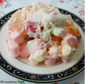 combine friut in a large bowl: stir in sour cream until coated. fold in marshmallows and coconut cover and chill overnight. makes 8-10 servings.