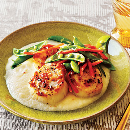 2. Heat a large skillet over high heat. Add oil; swirl to coat. Pat scallops dry with paper towels; sprinkle with 1/4 teaspoon salt and black pepper. Add scallops to pan; cook 3 minutes on each side or until desired degree of doneness. Remove scallops from pan.