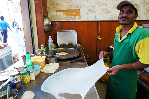 7. Variation: Add curried mince, curried onions or even sliced banana to the centre to the disc before the next step to create a murtabak.