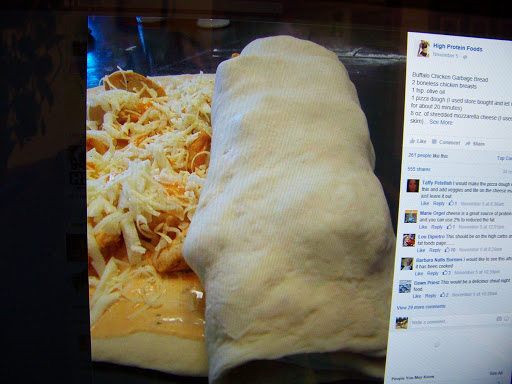 add ranch or blue cheese dressing, the rest of wing sauce spread across dough add chicken then top with mozzerella and cheddar cheese roll the dough like a pinwheel until u reach the end make sure to tuck the ends of the dough in so it doesn't ooze when cooking