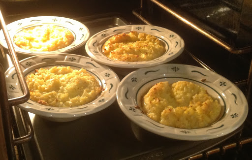 -Transfer "grits" to a greased casserole dish or individual dishes.