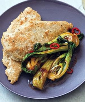 Sesame Chicken with Gingery Bok Choy Recipe | Real Simple Recipes