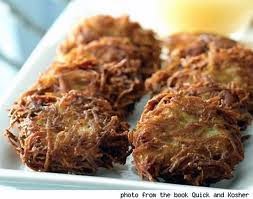 Per serving (2 latkes without applesauce): 85 calories, 0g fat, 0g sat fat, 0mg cholesterol, 144mg sodium, 19g carbs, 2g fiber, 3g protein, 23mg calcium. POINTS: 1