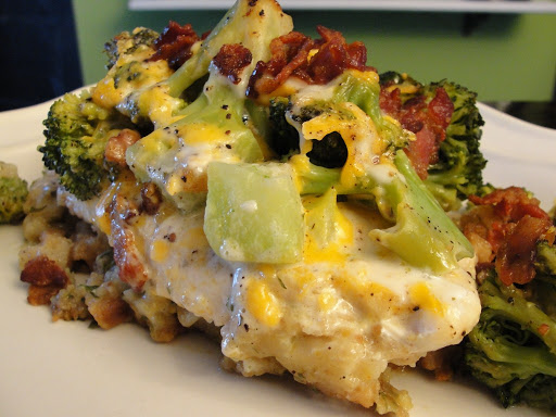 Sprinkle with 1/4 of the cheese and 1 slice of bacon, crumbled.