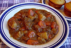Stir the carrots and potatoes into the stew mixture. Cook 30 to 45 minutes covered or until the potatoes are tender. Add a half-cup of hot water to the stew if the mixture becomes too thick.