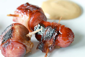 appetizers really hit the spot. Start with a kielbasa or Polish sausage, wrap it with a bit o' bacon and add the secret ingredient before smoking.