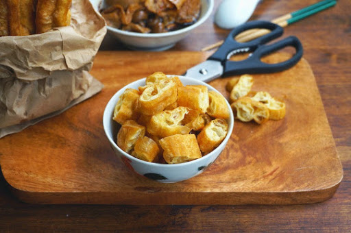 Heat enough oil over medium heat. When the oil is hot, stretch the dough a little and drop it into the oil. Turn over the crullers with a long chopstick until it expands and golden brown in color. Remove and drain on a paper towel.