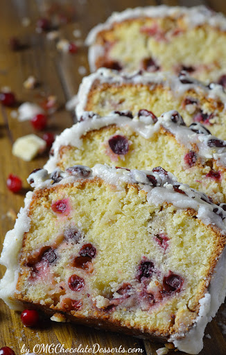 Sprinkle the cake with dried cranberries and drizzle with chocolate. (You can drizzle the chocolate with a spoon or transfer it into small zip-lock bag, cut off the corner and pipe the chocolate over the cake).