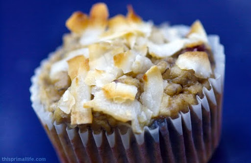 Mix coconut flour, baking soda, shredded coconut and salt in a large bowl, set aside. Beat eggs in a separate bowl and add mix in the coconut milk, vanilla extract, and mashed bananas. Add the wet ingredients to the dry ingredients, mix until well combines. Fold in blueberries. Divide into 12 muffins. Bake at 350 degrees for 25-30 minutes.