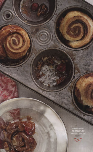 4. On a Lightly floured surface, unfold puff pastry sheets; brush with melted butter. Sprinkle with brown sugar mixture. Tightly roll each into a Log. Cut each log into 6 slices; place slices in prepared muffin cups.