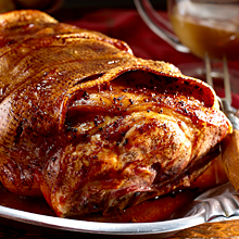 4.Transfer pork to cutting board; let rest 20 minutes. Remove skin and cut into pieces. Drain fat from drippings. Cut meat from bone. Serve with skin and pan juices.