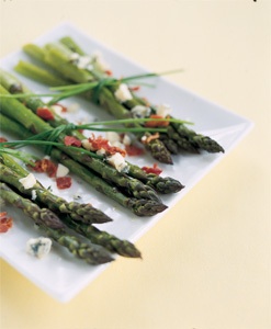 Wash and dry asparagus. Drizzle with olive oil and salt and pepper and roast for 10 minutes at 400.