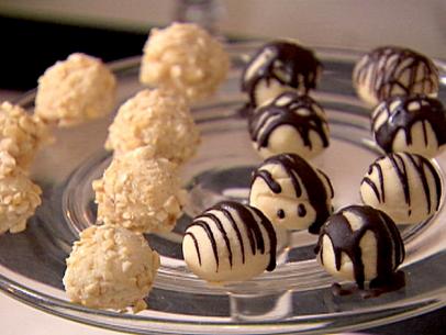 Drizzle the melted bittersweet chocolate over 10 of the truffles. Roll the remaining truffles in the chopped nuts. Chill until ready to serve.