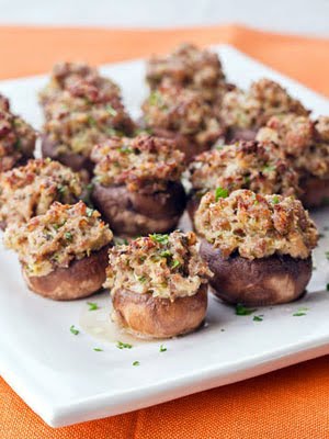 3. Fill each mushroom cap generously with the sausage mixture. Arrange in a snug single layer in a large baking dish. Bake until the stuffing is browned and crusty, 50 minutes.