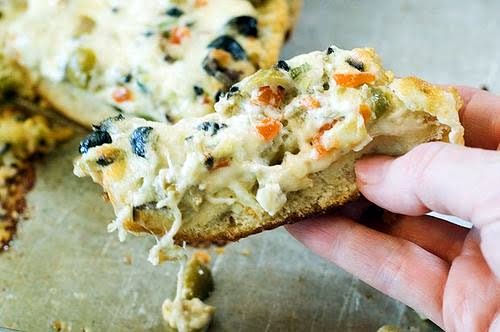 Spread mixture onto French bread that has been sliced lengthwise. Bake at 325ºF for 25 to 30 minutes or until cheese is melted and browning.