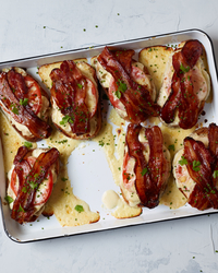 Preheat the oven to 425°. Arrange the bacon on a rack set over a baking sheet. Cook until golden and crisp, about 30 minutes.