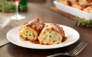 10. Add lasagna rolls and cover with remaining sauce and cheese