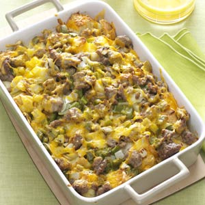 In a large bowl, whisk the eggs, milk, and mustard. Pour over the top.