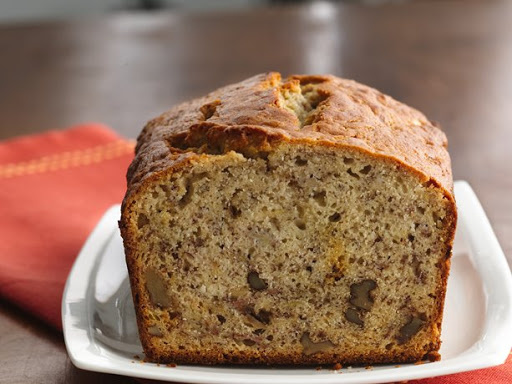 Cream together the shortening, vanilla, and sugar. Add eggs and beat together. Stil in dry ingredents alternating with sour milk and mashed bananas. Mix until smooth. Stir in buts. Bake in greased 5x9 inch loaf pan or 2 3x7 inch pans. Bake 50-60 minutes at 350 .