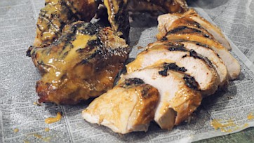 In the last 30 minutes, begin basting the turkey halves with mustard BBQ sauce and cook until temperature reaches 165ºF. Remove the turkey halves from the grill to rest for 15 minutes before slicing and serving. Serve remaining BBQ sauce on the side.