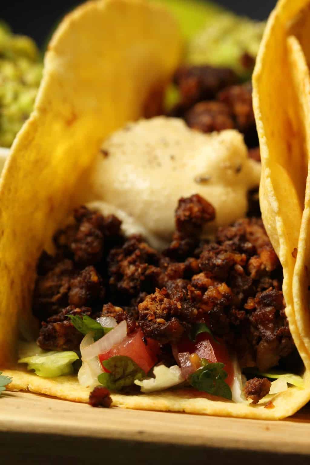 *If you want this vegan taco meat to be entirely gluten-free then use a gluten-free soy sauce or switch for tamari. If you use a regular (not dark) soy sauce, the color of the taco meat will be much lighter.