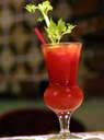Peel and seed the yellow tomatoes. Puree them in a food processor until the juice can run through a fine strainer. (It'll be about 6 ounces.) Chill, then combine with the vodka, vinegar, and Worcestershire in a cocktail shaker. Shake, and pour into a champagne flute. Garnish with cherry tomatoes and celery.