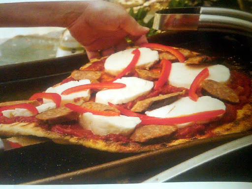 Prepar pizza crust according to recipe directions (see below), grilling one side of dough. Spread red sauce (see below) evenly over cooked side of crust. Layer mozzarella, sausage and red bell pepper over sauce. Return pizza to grill and grill over indirect heat, covered with grill lid for 7-10 minutes or until bottom of crust is browned. Transfer to a cutting board. Cut into wedges and serve immediately.