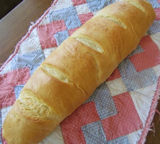 Cover with plastic wrap and then towel. Let rest 20 minutes. Punch down. divide int 2 balls. Roll each into 8x15 rectangle on greased board. Roll jellyroll beginning on long end. Seal. Tuck ends. Taper ends by rolling gently with hand. Place seam side down on greased board.