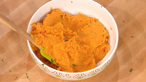 - 4 pounds sweet potatoes, peeled and cut lengthwise into quarters