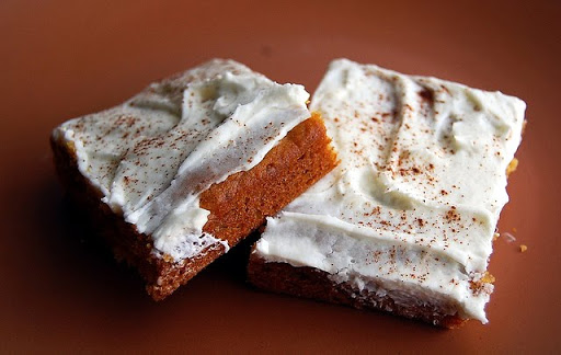 To make the frosting, beat cream cheese in a large mixing bowl using a mixer on medium speed until creamy. Beat in butter until creamy. Beat in confectioners' sugar, cream and vanilla until well combined and smooth - about 2-3 minutes. Spread frosting over cake, sprinkle with extra cinnamon if desired, and slice into bars.