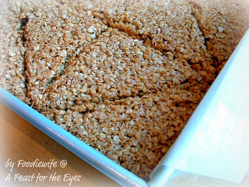 I saw this recipe in Bon Appetit, March 2010 and written by Molly Wizenberg. I was lucky enough to find Golden syrup at my local World Market. I have a couple of tips on how to make these very simply... well, what are they? Cookies? Breakfast snacks? Not to be confused with the pancake, this delicious bar cookie is made from oats bound with butter, golden syrup, and (usually) brown sugar. I ended up cutting these into 8 triangular shaped slices, and they are all gone! Super simple, definitely sweet-- reminiscent of a granola bar. I'll show you how I made them on my food blog at: http://foodiewife-kitchen.blogspot.com/2010/03/british-flapjacks-not-to-be-confused.html