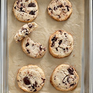 Cook's Note: Chocolate wafers: The original recipe calls for chopped dark chocolate, but I really prefer chopped chocolate wafers because they make shaping and cutting the dough so much simpler. You can also use chocolate chips, but be sure to chop them as well or you’ll find slicing the dough to be nearly impossible.