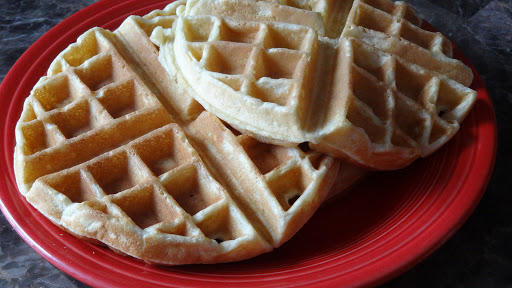 Pour batter it onto hot waffle iron and cook until done. This usually takes a few minutes, a good sign that the waffles are done is when the steam stops coming out of the waffle maker.