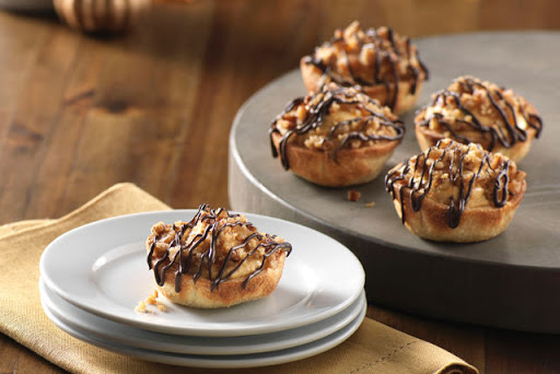 Unroll pie crusts; cut each into 5 rounds with 4-inch cookie cutter. Use one to line each of 20 muffin pan cups sprayed with cooking spray. Bake 6 to 8 min. or until golden brown; cool in pan 5 min. Transfer to wire racks; cool completely.