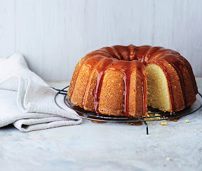 Combine preserves and lemon juice in a small saucepan. Bring to a boil, reduce heat, and simmer, stirring occasionally, until glaze is reduced to 1/2 cup, 6-8 minutes. Strain glaze into a small pitcher or bowl; discard solids in strainer. Pour glaze over cooled cake and let sit for at least 10 minutes.