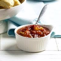 In saucepan combine tomatoes, sugar, cinnamon, and crushed red pepper. Bring to boiling, stirring often. Reduce heat; cook, uncovered, over medium-low for 35 minutes or until thickened, stirring occasionally. Remove from heat Transfer to a bowl; cool. Serve or store covered in refrigerator up to 3 days.