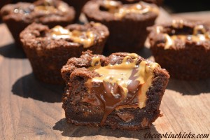 14.Pour about 1 tbsp peanut butter into each brownie cup center. Top with additional chocolate chips if desired.