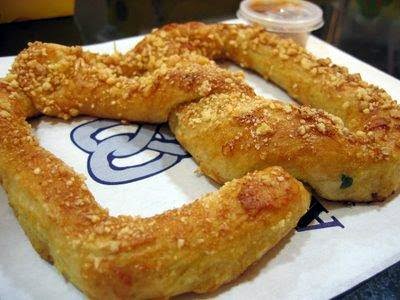 Pinch ends of rope then bring ends of rope to other side of circle. Dip pretzels in warm water and baking soda mixture and put on baking sheet.