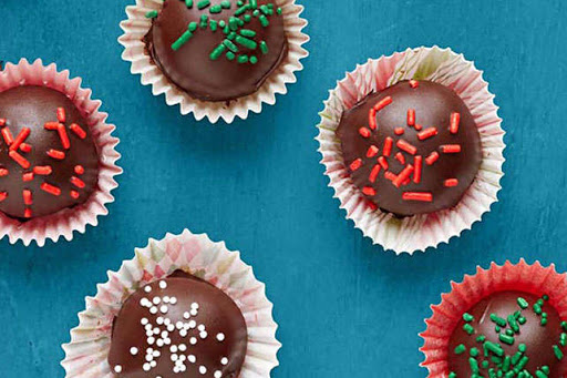 Melt chocolate as directed on package. Dip mints, 1 at a time, in chocolate, turning to evenly coat both sides of each mint; return to baking sheet. Top with sprinkles. Let stand 3 hours or until firm.