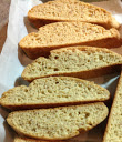 Transfer the logs to a work surface. Cut each log diagonally into 1/3-inch-thick slices using a serrated knife. Arrange the slices, cut-side down, on the baking sheet. Bake the slices, rotating the baking sheet halfway through, until crisp, about 20 minutes. Transfer the slices to the cooling racks and let cool.