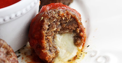 Press 1 cube of mozzarella into center of meatball and roll meat to surround the cube.