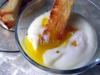 * Bake in a bain marie in a preheated 350°F oven until the tops are set but yolks are still runny, about 15 minutes. Sprinkle with remaining parsley. Serve with croutons or toasted brioche fingers.