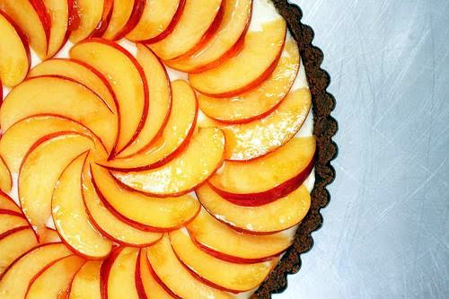 For topping: Overlap nectarine slices atop filling in concentric circles. Brush with jam. Sprinkle with chopped crystallized ginger if you’re using it. (Mint makes an excellent garnish, if you’re skipping the ginger.) Serve, or refrigerate up to 6 hours.