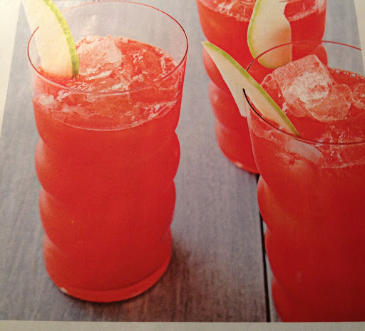 Slice off top quarter of watermelon. Scoop out flesh, puree and strain into bowl. Stir in vodka, soda and lime juice. Use watermelon as punch bowl. Garnish drinks with apple slices.
