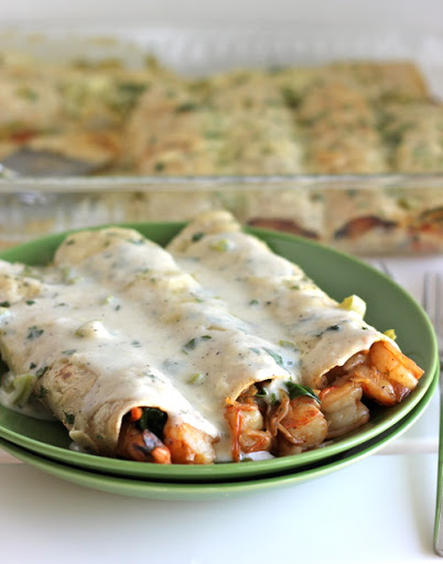 Shrimp- Roasted Shrimp Enchilada's with Jalapeno Cream Sauce