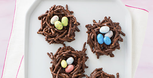The secret ingredient to these little cuties: chow mein noodles, transformed into tasty perches for candy-coated chocolate eggs or your favorite jelly beans.