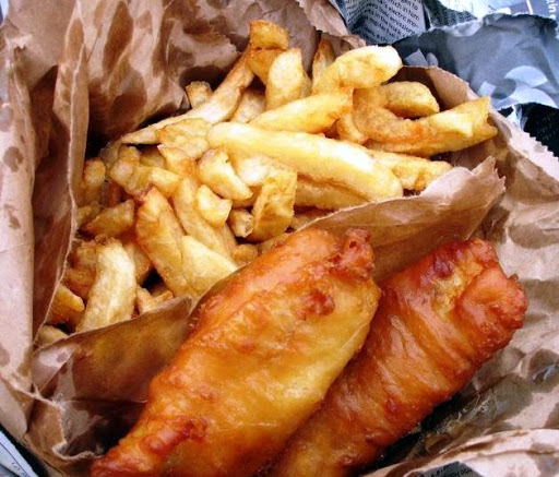 Mix together the flour and the beer, and then fold in the egg whites. Turn up the heat of the oil to 350 degrees F (180 degrees C). Dip the fish in the batter and fry for a few minutes with the chips until golden brown.