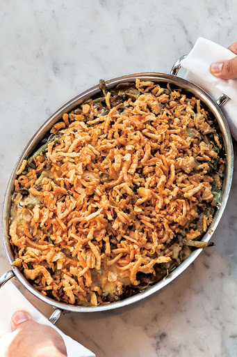 Sherry vinegar balances the richness in the cream sauce for this Thanksgiving staple from Thomas Keller's Bouchon Bistro in Yountville, California. A riff on the American classic, this recipe swaps the green beans for slender French-style haricots verts and the canned mushroom soup for a from-scratch mushroom cream sauce. The whole thing then gets a topping of crispy shallots before baking. This recipe first appeared in our November 2014 issue with the story Holiday for the Heroes.