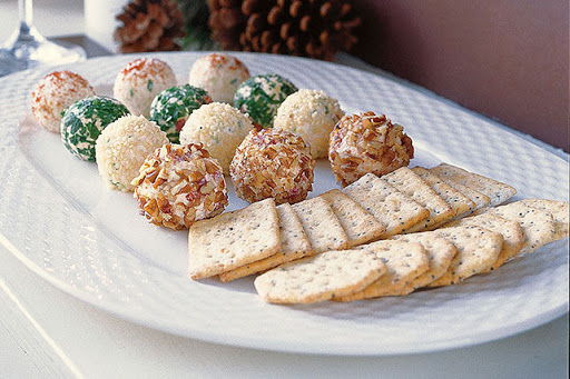 Shape each mixture into 24 (1-inch balls); roll in nuts. Serve with crackers.