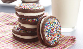 6. Place half the cookies, bottom side up on a baking sheet lined with parchment paper. Top with half a marshmallow. Bake at 350ºF (180ºC) for 2 minutes. Top with another cookie, top side up.